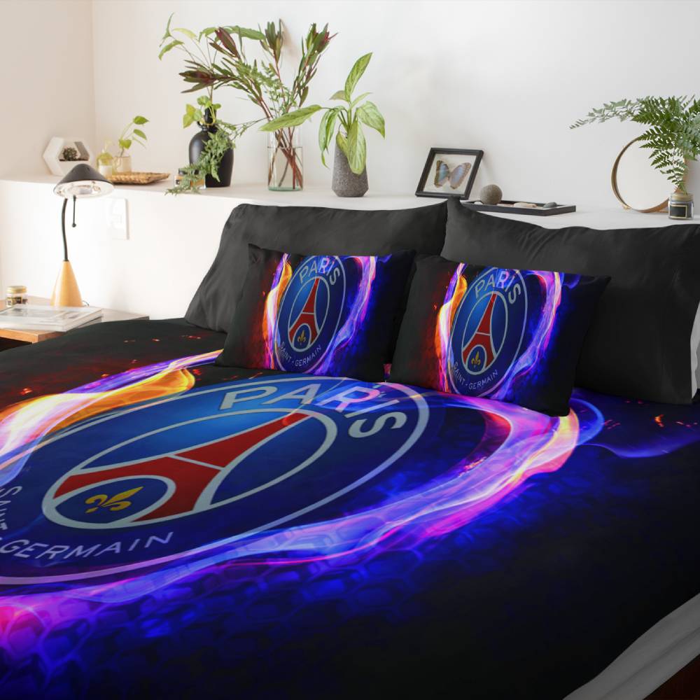Optez pour cette parure de lit du Paris Saint Germain, le PSG, pour exprimer votre amour pour le club. Vous allez pouvoir supporter votre équipe favorite même depuis votre chambre.