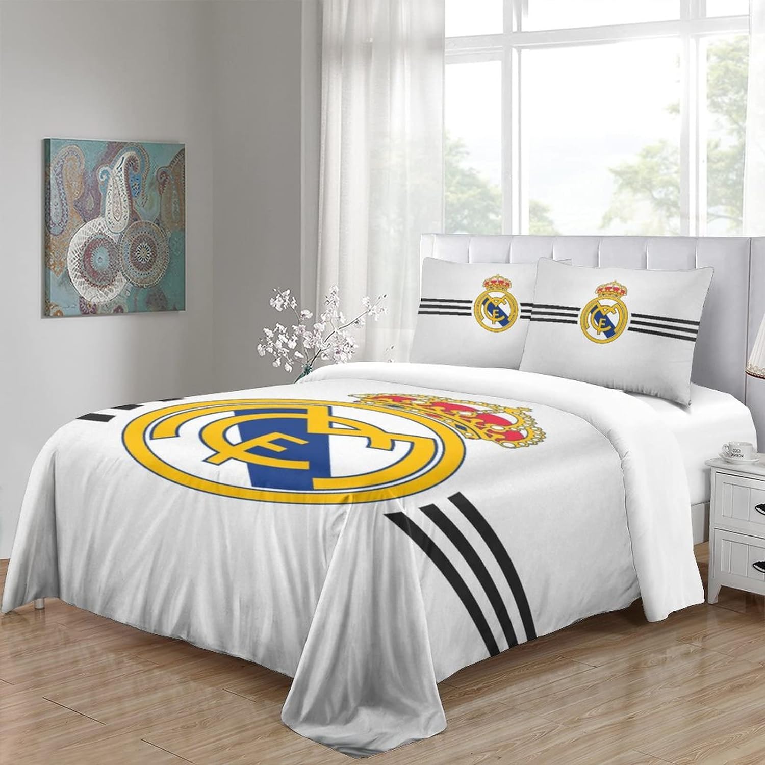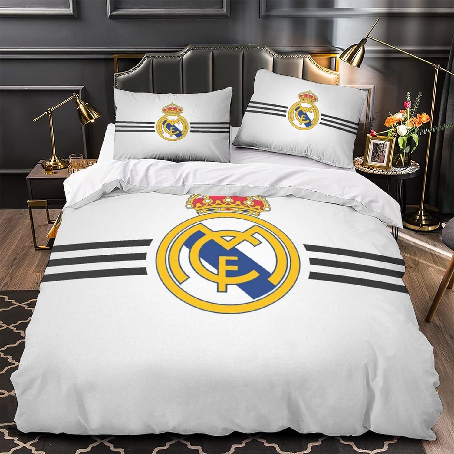 Cette parure de lit est spécialement destinée à vous qui est un passionné du Real Madrid, elle est iconique, arborant un blanc pur, elle apporte une touche d’élégance intemporelle à votre chambre à coucher.