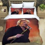 Transformez votre espace nuit en véritable scène de rock avec cette parure de lit à l’effigie de Johnny Hallyday au micro. L’image saisissante de l’artiste en pleine performance vous transporte dans l’univers captivant d’un de ses concerts mythiques.