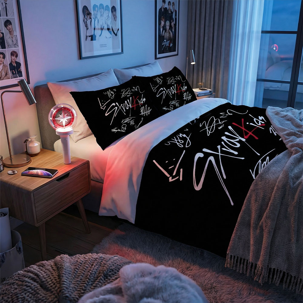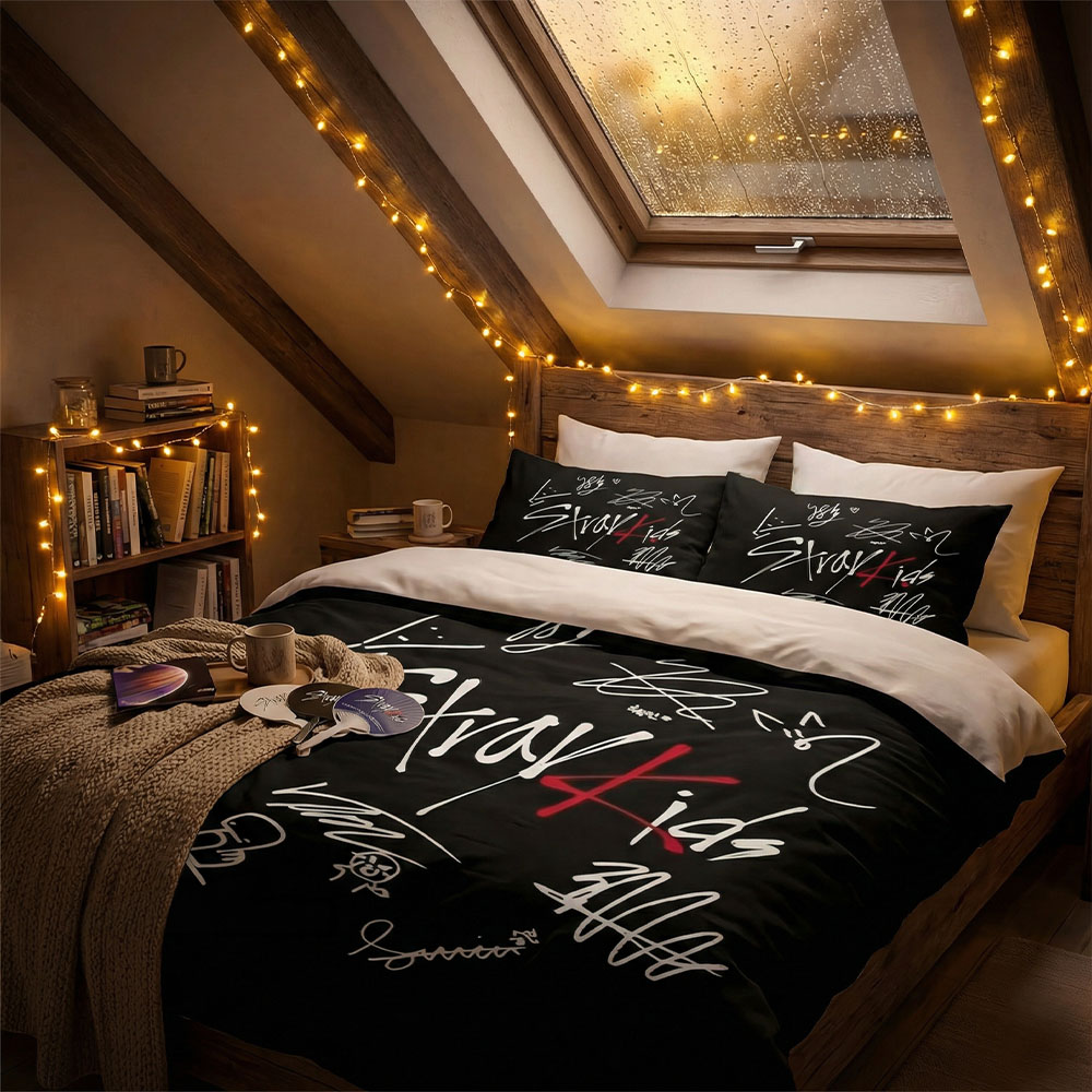 Plongez dans l’univers audacieux des Stray Kids avec cette parure exclusive arborant les signatures iconiques des huit membres. En tant que STAY, vous méritez un espace qui reflète votre passion pour ce groupe auto-produit unique.