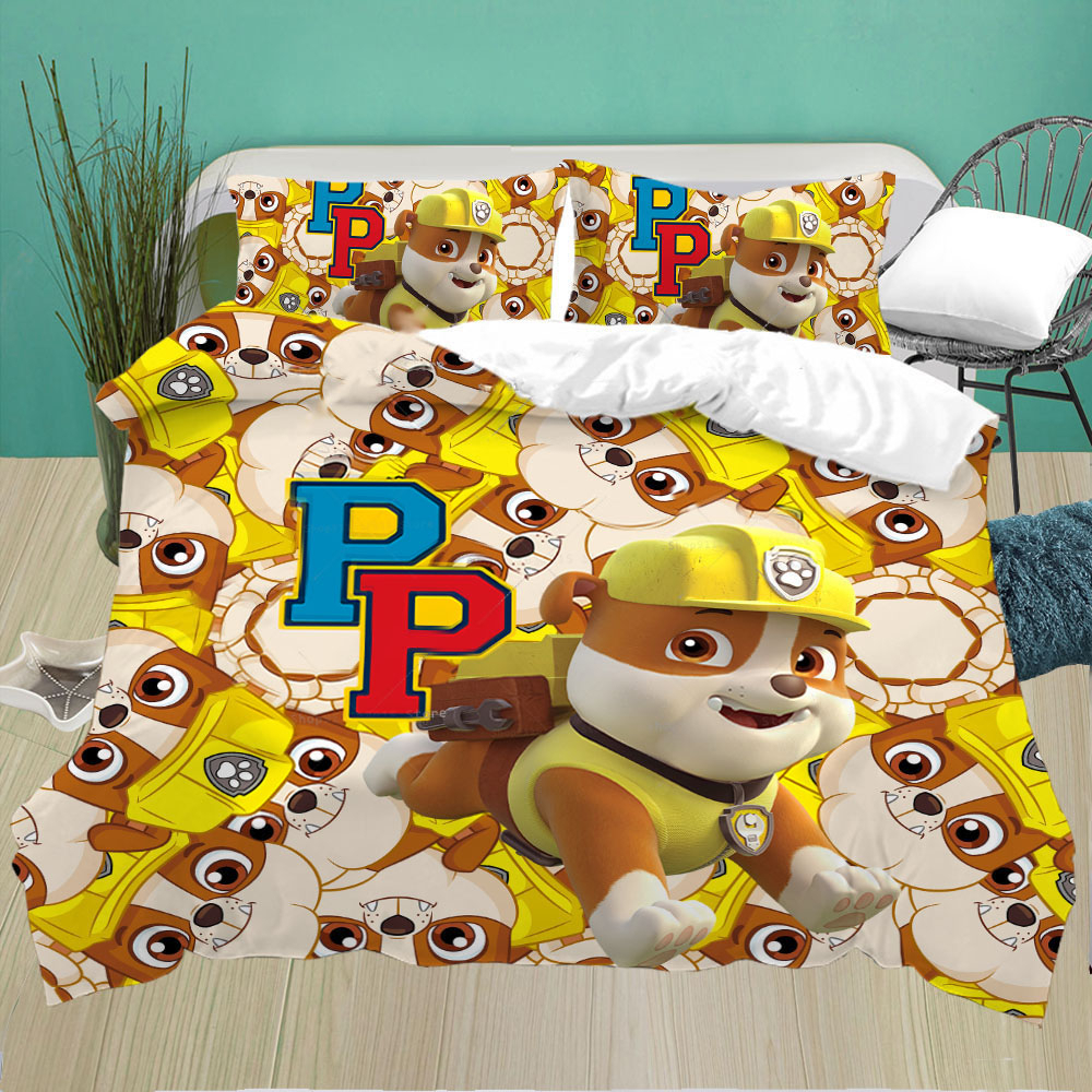 La parure de lit Pat Patrouille jaune est un ensemble de linge de lit pour enfant qui plaira à tous les fans de la célèbre série animée. Elle est fabriquée à partir de matériaux de haute qualité, offrant ainsi une douceur et un confort optimal pour votre enfant.