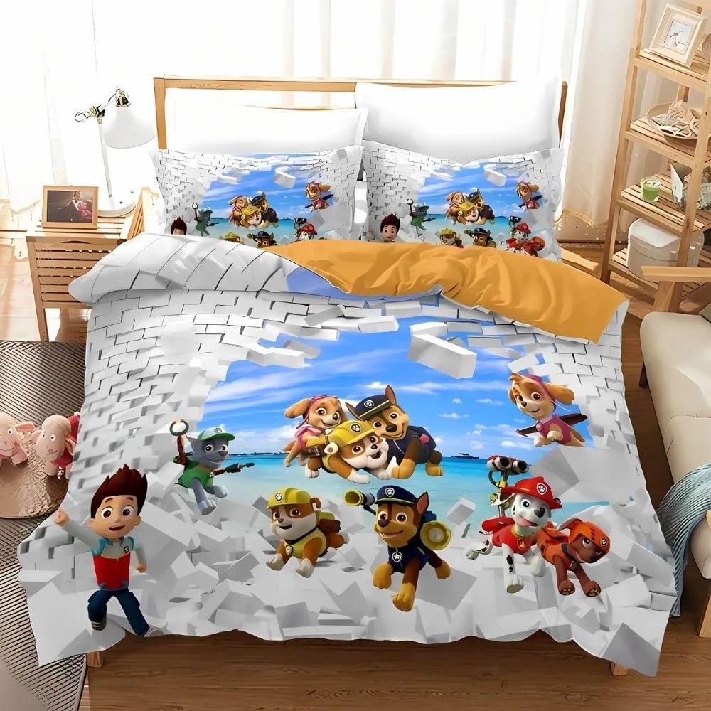 Cette parure de lit réunit toute l’équipe Pat’Patrouille : Chase, Marshall, Ruben, Rocky, Zuma et Stella ! Imprimée avec des couleurs vives et des détails réalistes, elle apporte toute la gaieté et l’énergie de leurs aventures directement dans la chambre de votre enfant.