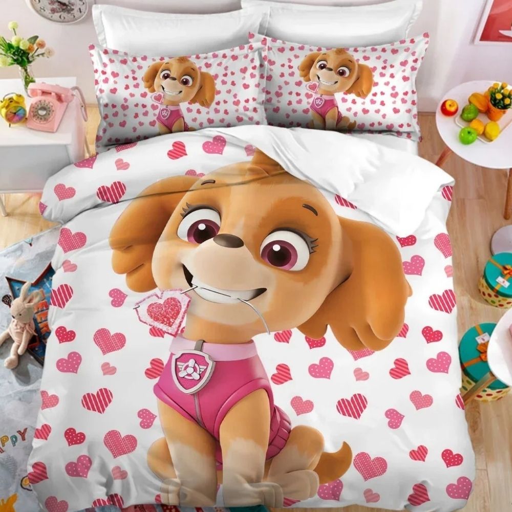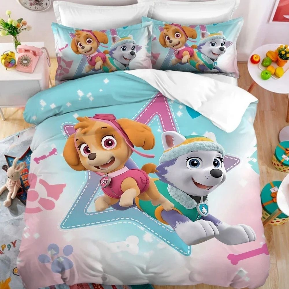 Cette parure de lit met en avant Stella, la courageuse pilote de la Pat’Patrouille, toujours prête à sauver la situation.