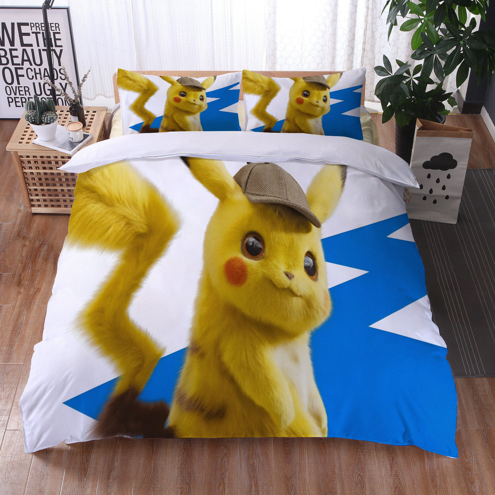 La belle couleur bleue de cette parure va apporter une note de calme dans cette chambre. Ce gros Pikachu en 3D sera la dernière touche de décoration.