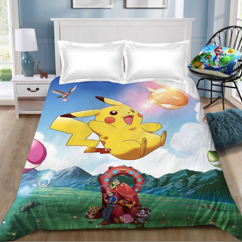 Sacha capte les Pokémons sauvages et les entraine à combattre les Pokémons des autres dresseurs. Cette parure de lit Sacha avec ses pokémons donnera du caractère et du cachet à votre chambre.
