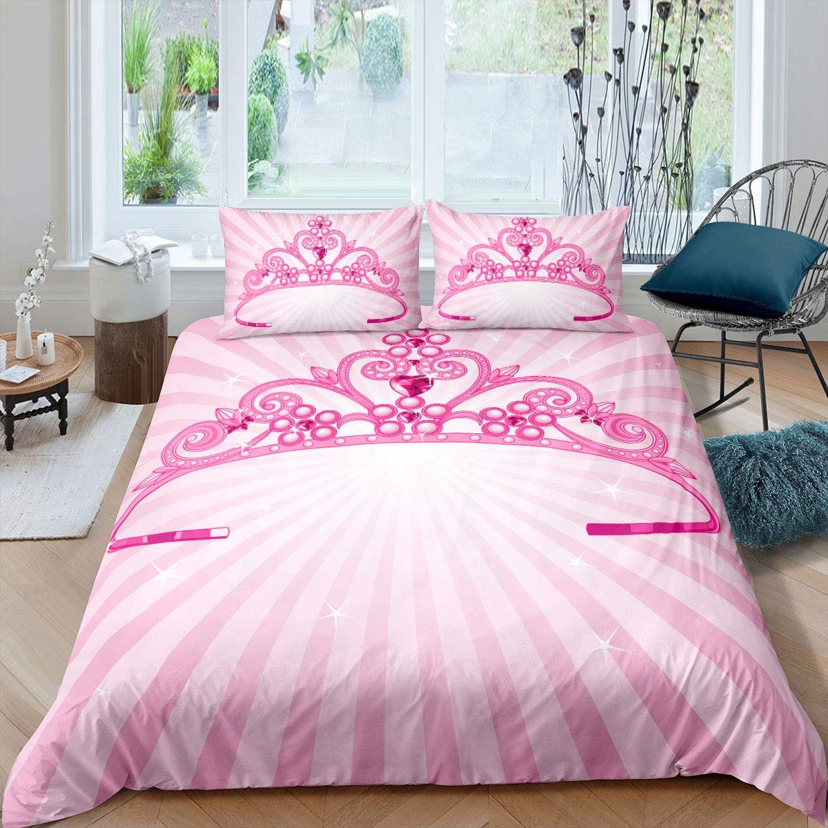 Cette parure de lit princesse diadème rose est composée d’une housse de couette rose pâle avec un imprimé d’un diadème et de petits motifs roses, ainsi que d’une taie d’oreiller assortie. Le tout est en 100% polyester microfibre, ce qui le rend doux au toucher et facile à entretenir. Cette parure de lit est idéale pour les petites princesses qui rêvent de dormir dans un lit digne d’un conte de fées !